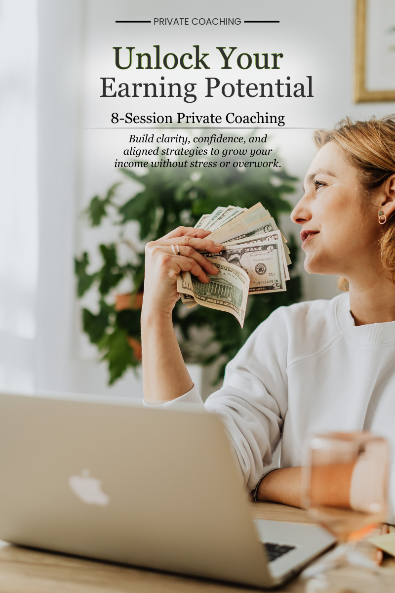 In this coaching program, you’ll gain clarity on your financial habits, uncover hidden beliefs that create stress or scarcity, and develop the mindset, confidence, and strategies to increase your income. You’ll learn to make money choices — earning, spending, or saving — that feel aligned with your values and goals.